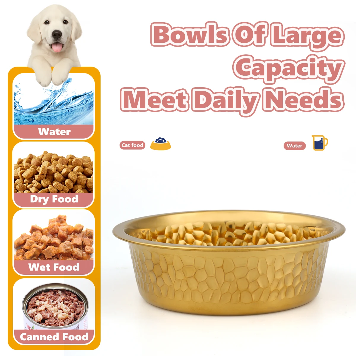 The gold-plated surface adds a touch of elegance to your pet's feeding area, making meal times more enjoyable.