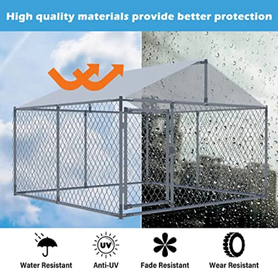 Outdoor Large Dog Kennel Heavy Duty Dog House Extra Wide Pet Kennel with Water-Resistant Cover for Back Yard Farm Silver